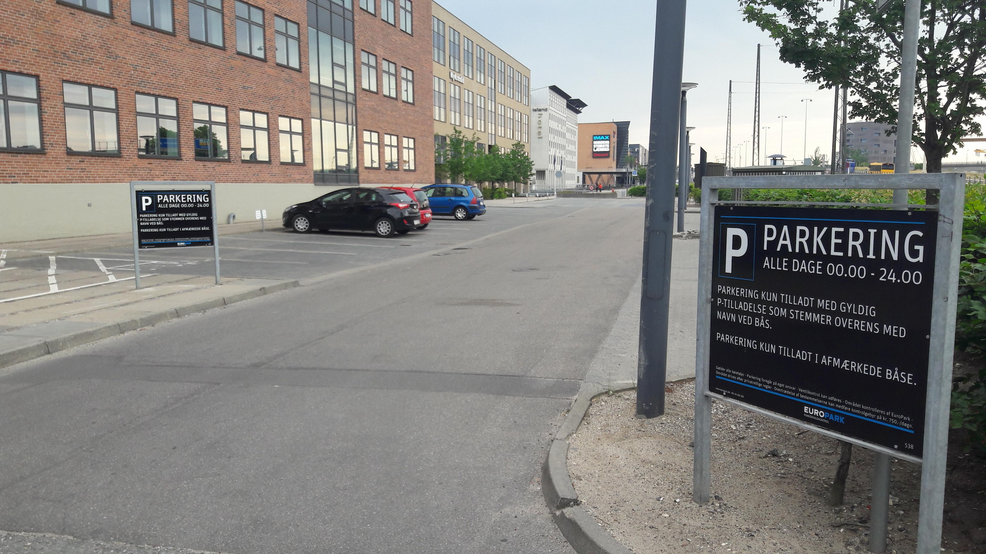 Opnå tre timers gratis parkering ved at registrere din nummerplade på en iPad i receptionen. Der er cirka 30 pladser på forpladsen til rådighed for hele husets gæster, så der er ikke garanti for en plads. Efter tre timer skal man sætte Easypark til eller benytte automaten på forpladsen til at registrere sin parkering.